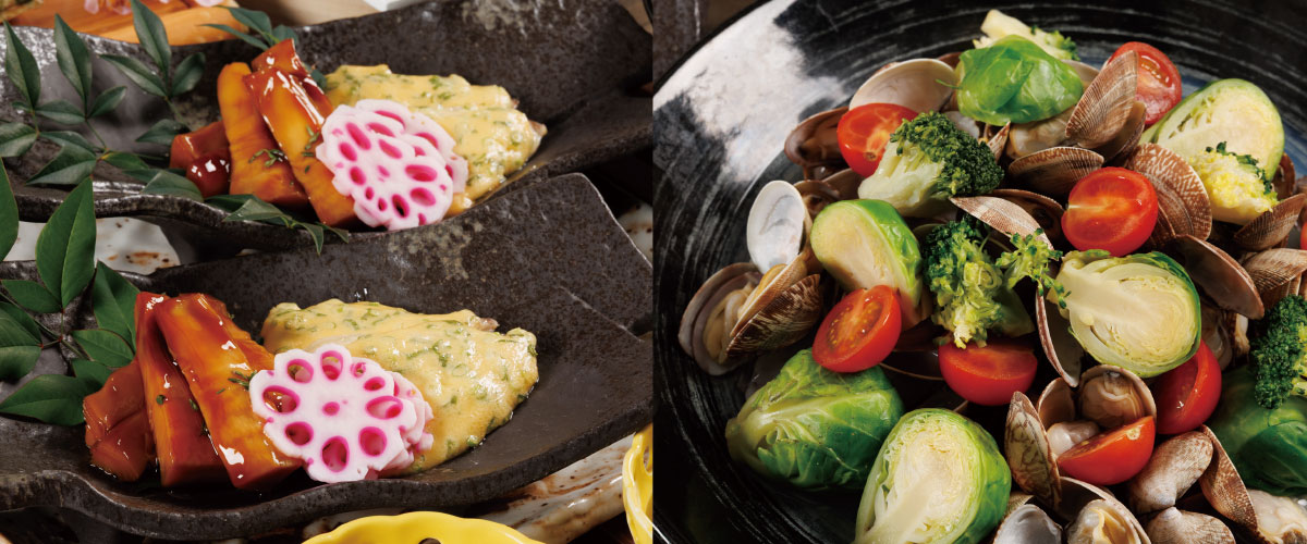 浜名湖・遠州・三河は食材の宝庫!こうした食材達が徳川家康公はじめ、出世人や浜松人の活力の源になったことで有名です。料理人の感性がかけ合わさった旬の食材を、さまざまなスタイルで、美味しいひとときをお過ごしください。