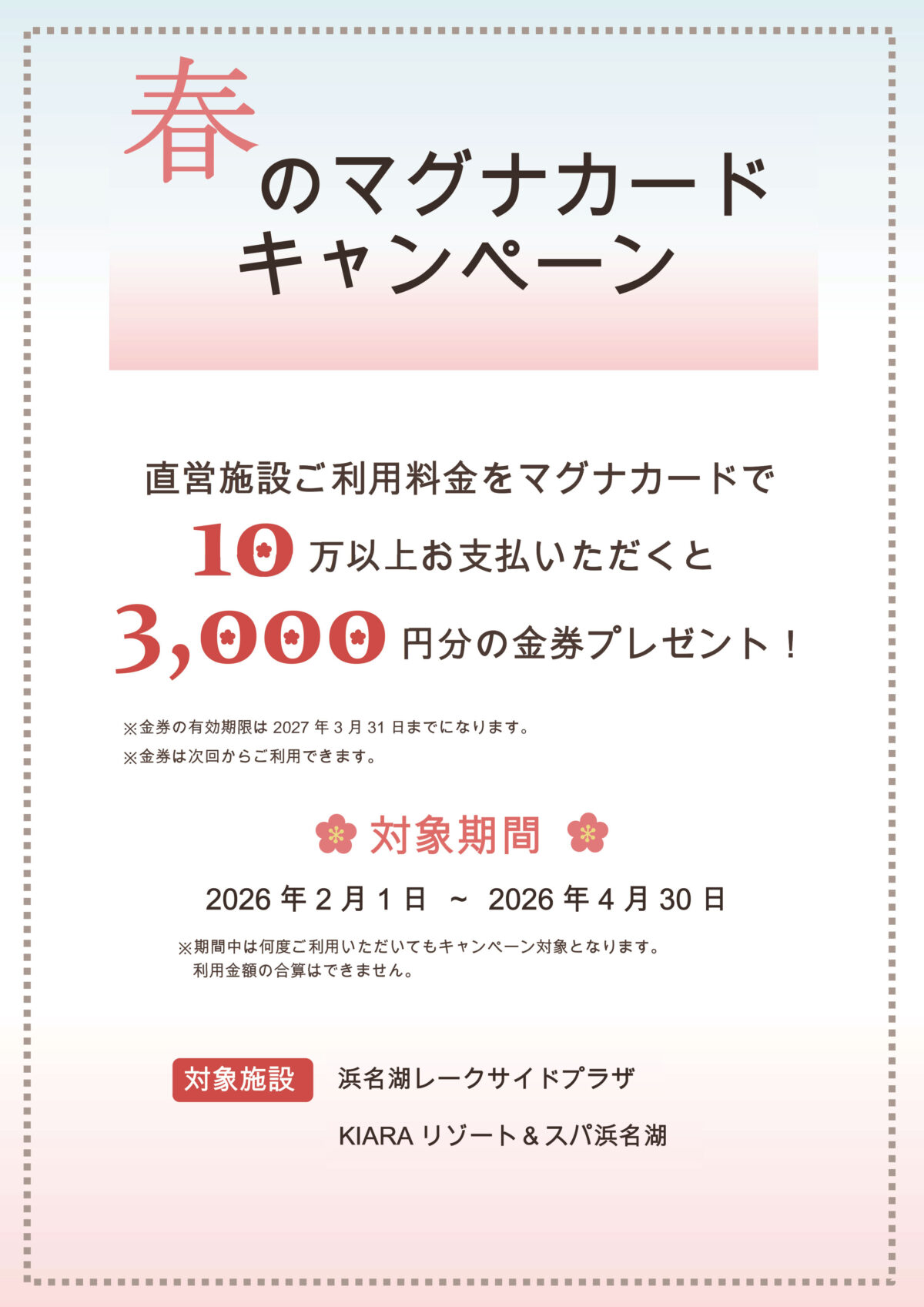 マグナカードで10万円以上のお支払いで3,000円分の金券プレゼント!