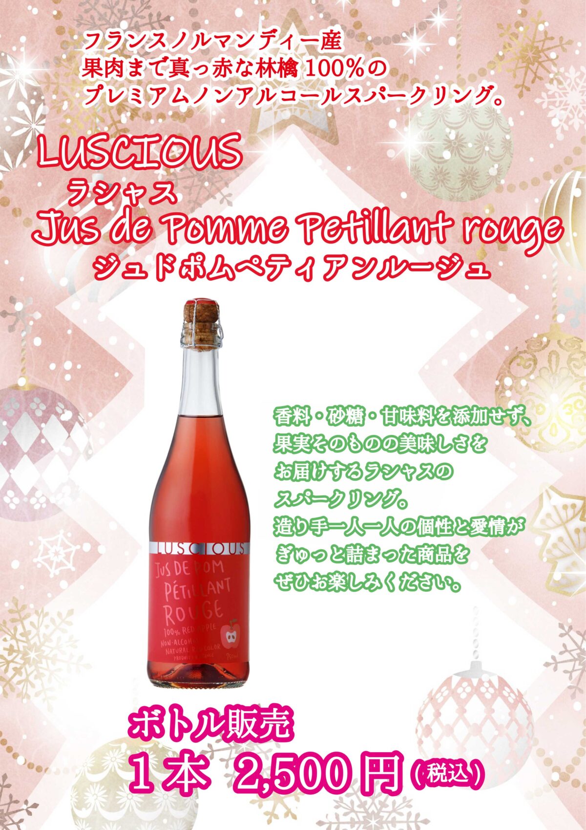 果肉まで真っ赤な林檎100%のプレミアムノンアルコールスパークリング
