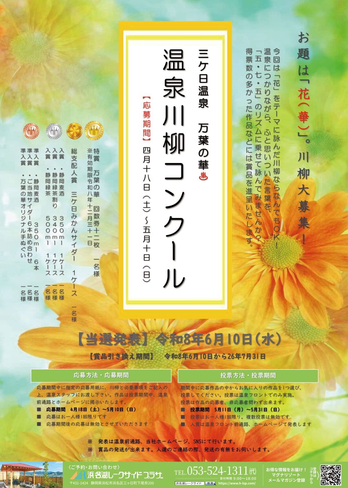 📃発表は温泉前通路への掲示やホームページ、各種SNSにて行います。