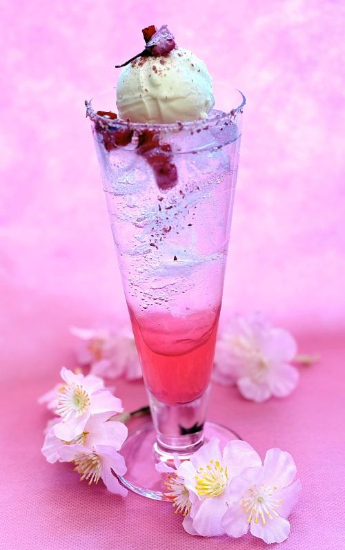 期間限定の桜が香るソーダフロート